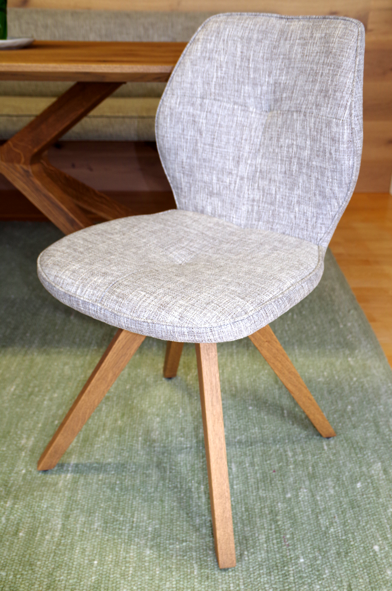 ANREI-Stühle Modell 730, Stoff W020, Füße Holz Eiche, auch in Metall schwarz matt und bronce lieferbar sowie jetzt neu: Auch mit Drehfunktion.